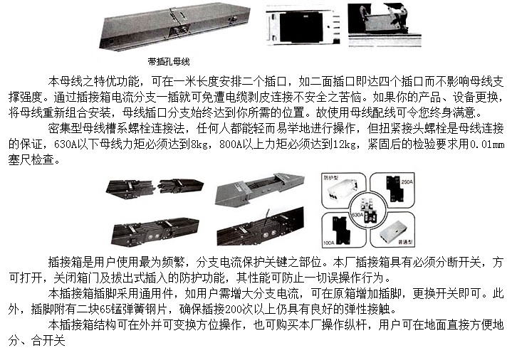 分岔母线:分支电流≥250A以上采用分岔母与插接开关箱连接,可保证面接触的效果,更为安全。