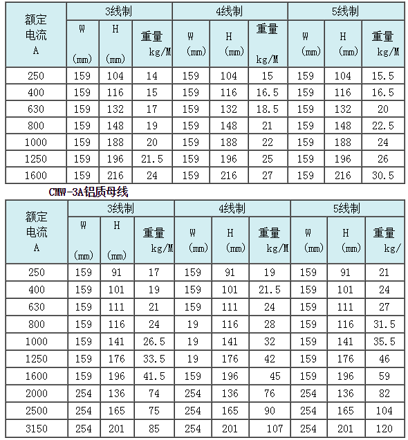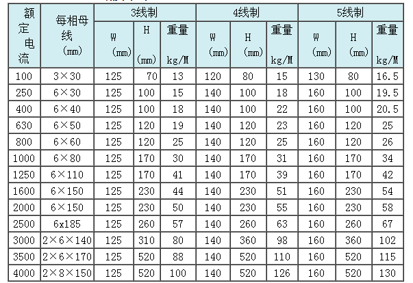 1、母线结构及电流等级表CMC-3A铝质母线。